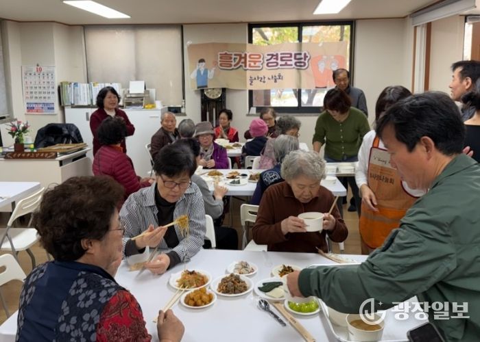 광장일보 나학천 기자 | 수원특례시 영통구 늘사랑나눔회가 지난 29일 매월 정기적으로 경로당을 찾아 따뜻한 식사 나눔인 ‘흥겨운 경로당’을 진행했다.
