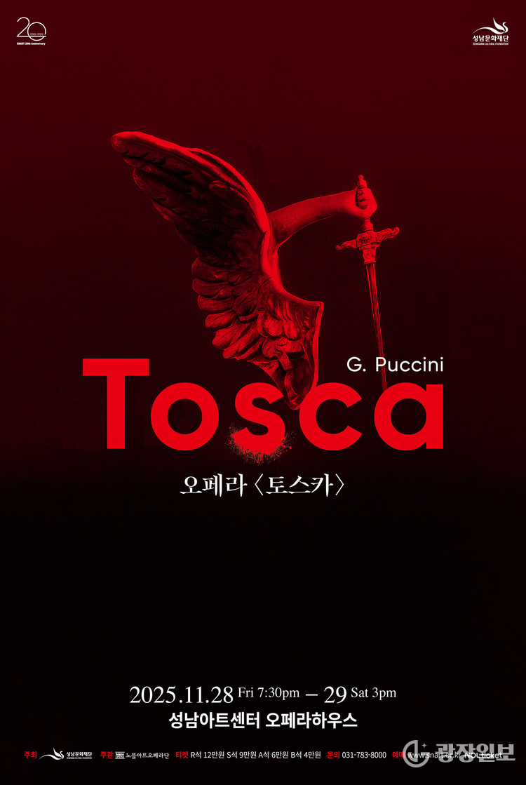 성남시= 주재영 기자 | 성남문화재단(대표이사 윤정국)은 성남아트센터 개관 20주년을 기념해, 푸치니의 걸작 오페라 ‘토스카’를 오는 11월 28일(금)과 29일(토) 양일간 성남아트센터 오페라하우스에서 공연한다.
