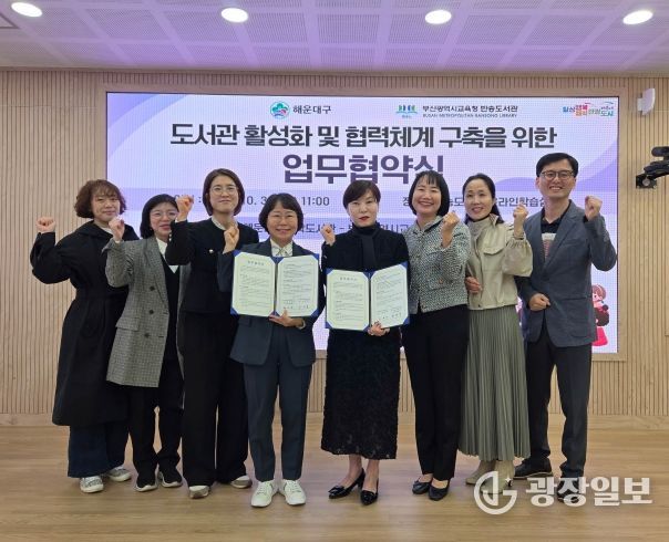 광장일보 주재영 기자 | 해운대구는 10월 30일, 부산광역시립반송도서관과 도서관 활성화 및 협력체계 구축을 위한 업무협약을 체결했다.