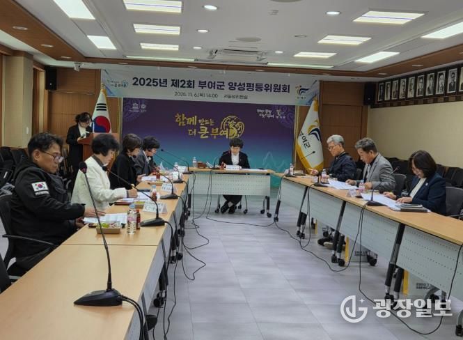 광장일보 주재영 기자 | 부여군은 지난 6일 서동브리핑실에서 '제2회 부여군 양성평등위원회'를 개최하고 양성평등기금사업 추진 현황 점검과 2026년 기금 운용계획(안)을 심의했다.