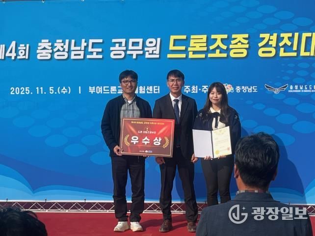 지난 5일, 부여군 드론교육체험센터에서 열린'제4회 충청남도 공무원 드론 조종 경진대회'에서 부여군 유지인·주희돈 주무관(이상 종합민원지적과)이 한 팀을 이루어 드론 정밀 조종 분야에 참가해 우수상을 받는 쾌거를 거뒀다.