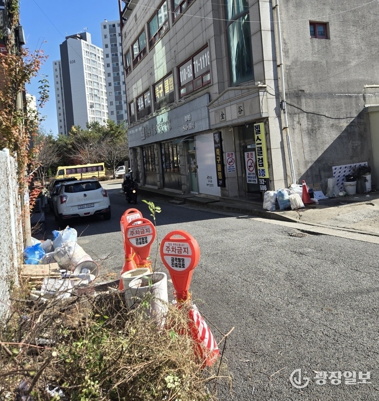 표지물 주변에는 생활쓰레기와 잡동사니가 반복적으로 버려지고 있으나, 지자체의 단속이나 정비가 이뤄지지 않아 주민 불만이 커지고 있다. 주민 A씨는 “불법 표지물 때문에 차량이 지나가기 어렵고 밤에는 더 위험하다”며 “쓰레기가 쌓여도 시는 아무런 조치를 하지 않는다”고 비판하고있다.
