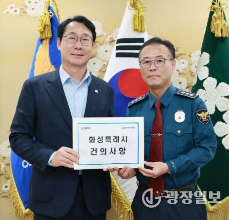 광장일보 나병석 기자 | 화성특례시는 지난 17일 급격한 인구 증가와 광범위한 행정구역으로 인한 치안공백 해소를 위해 경찰서 1개소 추가 신설을 경기남부경찰청에 공식 건의했다고 밝혔다. 이번 건의는 2026년 구청 출범에 앞서 시민 안전 확보와 치안 대응력 강화를 위한 선제 조치로 추진된다.