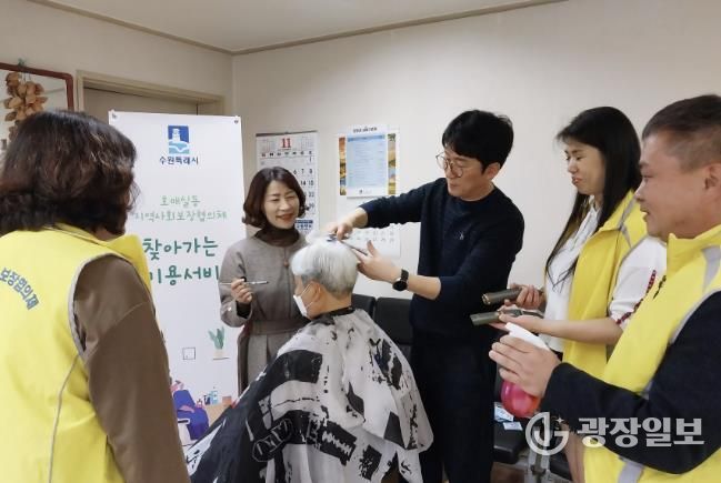 광장일보 나학천 기자 | 수원시 권선구 호매실동 지역사회보장협의체는 지난 25일, 헤어스타일N과 함께 찾아가는 이미용 서비스를 진행했다.