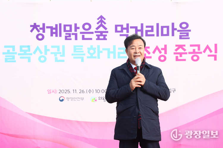 의왕시= 주재영 기자 | 의왕시(시장 김성제)는 11월 26일 청계동 922번지 일원에서 ‘청계맑은숲 먹거리마을 골목상권 특화거리 조성 사업’ 준공식을 개최했다. 이번 사업은 행정안전부 지역특성 살리기 공모사업으로 추진됐으며, 총 7억 원의 예산을 투입해 옥박골사거리부터 청계산 공영주차장까지 약 2.5km 구간을 정비했다.