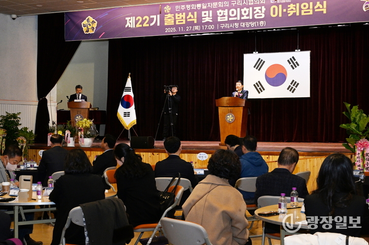 구리시= 주재영 기자 |구리시는 27일 시청 1층 대강당에서 민주평화통일자문회의(민주평통) 구리시협의회가 주관한 ‘제22기 민주평통 출범식 및 3분기 정기회의’를 개최했다고 밝혔다. 행사에는 백경현 구리시장과 강예석 협의회장, 자문위원 등 50여 명이 참석했다.