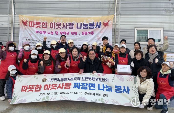 광장일보 주재영 기자 | 민주평화통일자문회의 인천부평구협의회(회장 홍삼곤)는 1일 주식회사 비바 공터에서 지역 어르신 및 지체장애인 가족 400여 명을 대상으로 짜장면 나눔 행사를 가졌다.