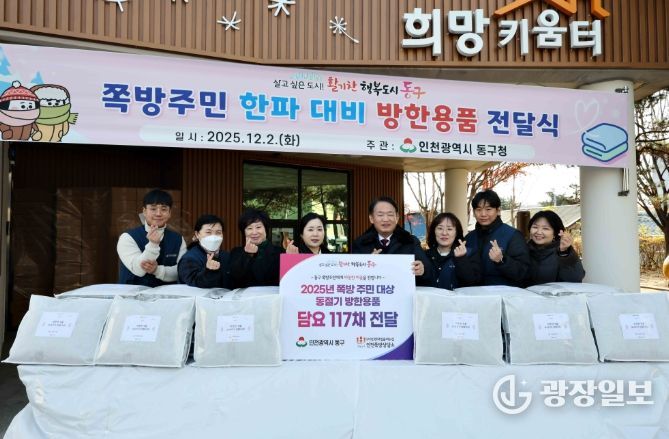 광장일보 주재영 기자 | 인천 동구는 지난 2일 겨울철 혹한기에 어려움을 겪기 쉬운 쪽방 주민 117세대를 대상으로 담요를 전달했다고 밝혔다.