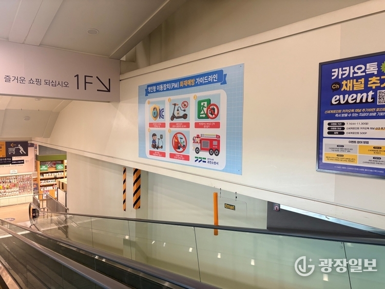 홍보판에는 △과충전 금지 △안전장치가 포함된 인증제품 사용 △현관문·비상구 등 위험 장소에서의 충전 금지 등 PM 화재 예방 핵심 수칙이 그림과 함께 알기 쉽게 담겼다.