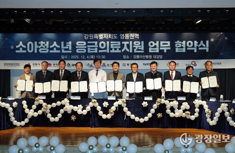 광장일보 이현나 기자 | 강릉시는 영동생활권의 안정적인 소아청소년 응급의료 체계 구축을 위해 강원특별자치도, 영동생활권 9개 시군(강릉, 동해, 태백, 속초, 삼척, 평창, 정선, 고성, 양양) 및 강릉아산병원과 4일 강릉아산병원에서 업무협약을 체결했다.