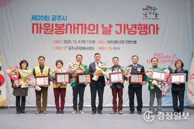 광장일보 주재영 기자 | 공주시자원봉사센터는 지난 4일 아트센터 고마 컨벤션홀에서 ‘제20회 공주시 자원봉사의 날’ 기념식을 열고, 올 한 해 지역 곳곳에서 헌신한 자원봉사자와 단체를 대상으로 기념식을 진행했다고 밝혔다.