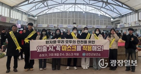 광장일보 주재영 기자 | 강진군이 인플루엔자 확산 방지를 위해 마스크 착용과 백신 접종을 독려하는 감염병 예방 캠페인을 지난 4일 강진읍시장 일대에서 실시했다.