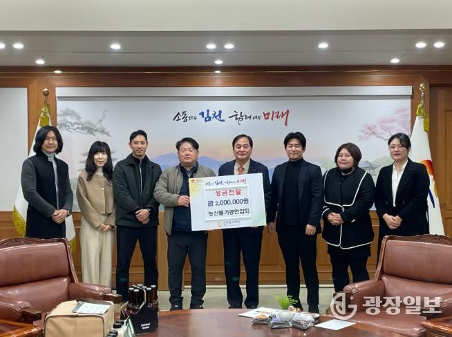 광장일보 주재영 기자 | 김천시농산물가공연합회는 지역 사회로부터 받은 사랑을 순환하고 ‘소통하는 김천, 함께 여는 미래’ 만들기에 동참하고자 12월 4일, 김천복지재단에 200만 원의 성금을 기탁했다.