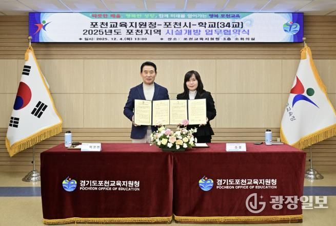 광장일보 이현나 기자 | 포천시는 지난 4일 포천교육지원청에서 포천교육지원청 및 관내 34개 초·중·고등학교와 ‘2025년 학교시설 개방 활성화 업무협약’을 체결했다.