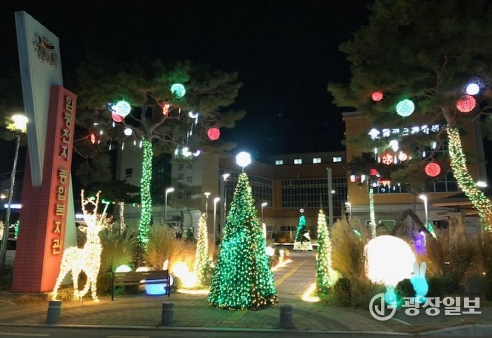 함평군은 5일 “노인복지관, 가족센터, 청소년센터 3개 기관이 함께 함평군천지종합복지관 앞 정원에 크리스마스트리, 달, 토끼 등 다양한 조형물과 야간경관을 설치했다”고 밝혔다.