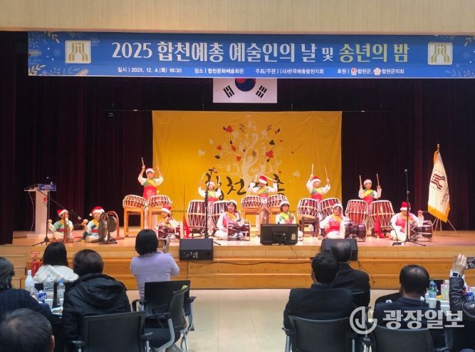 광장일보 주재영 기자 | (사)한국예총합천지회(지회장 이점용)는 4일 합천문화예술회관 대공연장에서 ‘2025 합천예총 예술인의 날 및 송년의 밤’ 행사를 성황리에 개최했다.