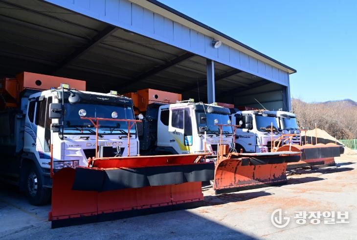 또한 덕천지구·피나무재·천천지구에 설치된 염수분사시설 3개소와 제설작업에 투입될 1톤 포터 10대, 2.5톤 트럭 1대, 15톤 덤프트럭 4대, 트랙터 51대, 제설삽날, 모래살포기 등 제설장비에 대한 사전점검도 완료했다.