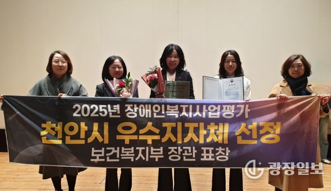 광장일보 주재영 기자 | 천안시는 보건복지부 주관의 ‘2025년 지방자치단체 장애인복지사업 평가’에서 우수 지자체로 선정돼 보건복지부 장관 표창을 받았다고 5일 밝혔다.