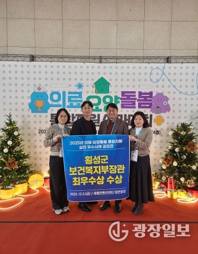 광장일보 이현나 기자 | 횡성군은 한국보건복지인재원이 주관한 ‘2025년 의료요양돌봄 통합지원 실천 우수사례 공모전’에서 '보건소 협업을 통한 통합돌봄 선순환 구축 사례'로 최우수상(보건복지부장관상)에 선정됐다고 밝혔다.