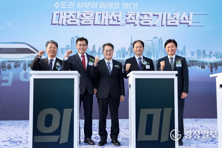 고양특례시= 주재영 기자 | 고양특례시 덕은지구의 숙원 사업인 대장~홍대 광역철도 민간투자사업(대장홍대선) 착공식이 15일 부천시 오정대공원 축구장에서 열렸다. 이날 행사에는 국토교통부 대도시권광역교통위원회 위원장을 비롯해 지자체장, 국회의원, 지역 주민 등 약 500여 명이 참석했다.