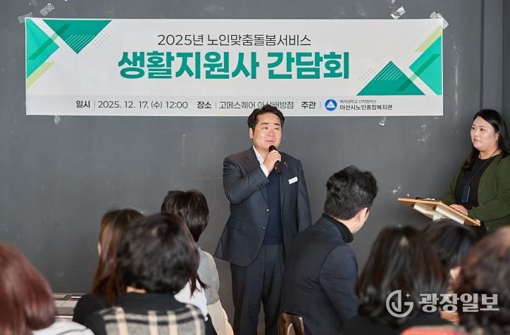 광장일보 주재영 기자 | 오세현 아산시장은 지난 17일 고메스퀘어 배방점에서 열린 아산시노인종합복지관의 노인맞춤돌봄서비스 생활지원사 간담회 현장을 방문해 돌봄 종사자들의 노고를 격려했다.