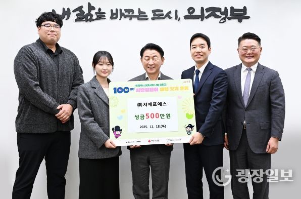 광장일보 주재영 기자 | 의정부시는 12월 18일 관내 기업 ㈜지에프에스가 지역사회 나눔 실천의 일환으로 성금 500만 원을 기탁했다고 밝혔다.