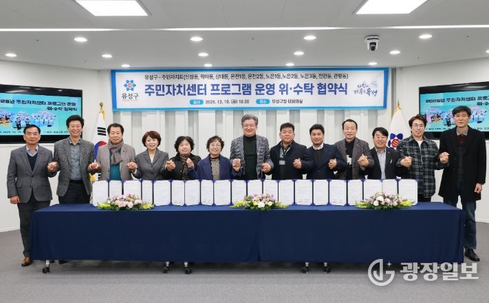 광장일보 이현나 기자 | 대전 유성구는 19일 동 주민자치회와 주민자치센터 프로그램 운영을 위한 ‘민간 위탁 협약’을 체결했다.