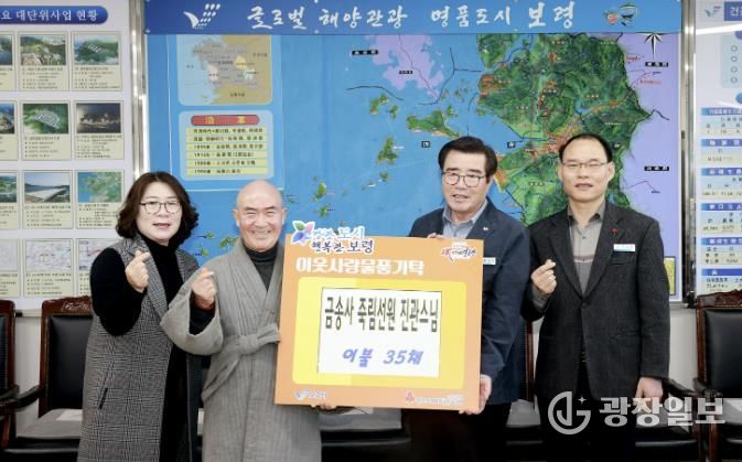 광장일보 주재영 기자 | 보령시는 지난 19일 시장실에서 청소영농조합법인과 삽시도 금송사 죽림선원으로부터 총 1,610만 원 상당의 후원물품을 기부받았다고 밝혔다.