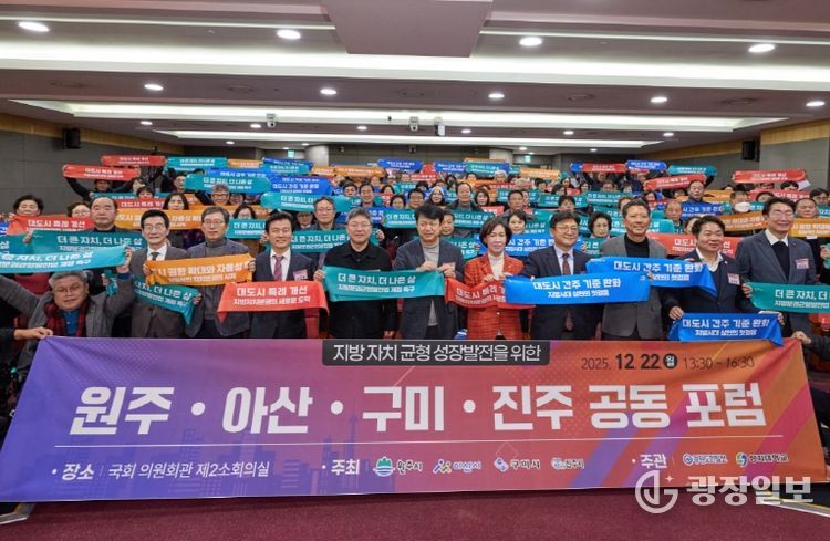이날 행사에는 아산·원주·구미·진주시 단체장을 비롯해 지역구 국회의원과 전문가들이 참석했다. 참석자들은 지방 중추도시가 스스로 성장의 기준을 세우고, 국가 균형발전의 주체로 기능해야 한다는 데 뜻을 모았다. 개별 도시 차원의 요구를 넘어, 유사한 제도적 한계를 겪고 있는 지방 중추도시들이 연대해 제도 개선을 촉구한 공식 행동이라는 점에서 의미를 더했다.