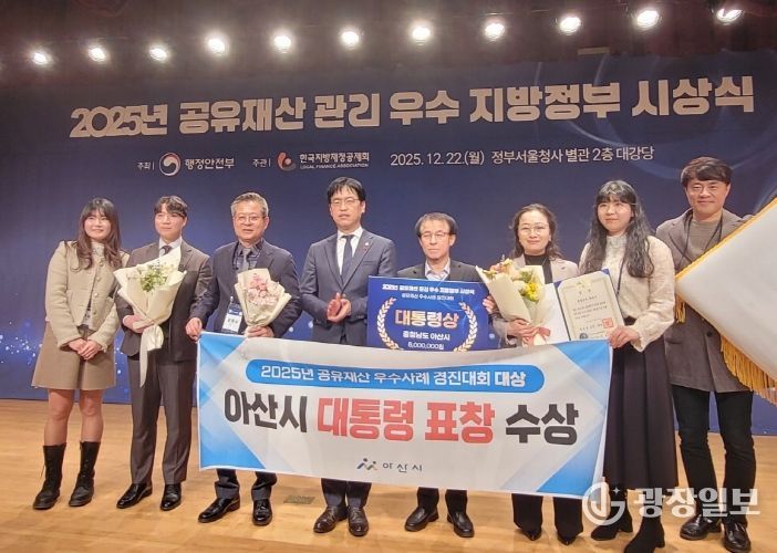 광장일보 주재영 기자 | 아산시는 행정안전부가 주관한 ‘2025년 공유재산 우수 지방자치단체 시상식’에서 우수사례 경진대회 부문 전국 1위에 해당하는 대통령상을 수상했다고 22일 밝혔다.