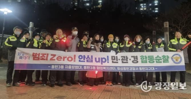 합동 순찰에는 동탄3동 행정복지센터 관계자, 동탄3동 자율방범대원, 동탄지구대원, 도ㆍ시의원, 사회단체장 등 30여 명이 참여해, 관내 취약지역을 집중 점검했다.
