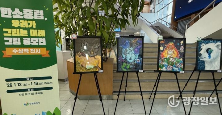 광장일보 주재영 기자 | 창원특례시는 미래세대의 눈으로 바라본 기후적응과 회복 메시지를 시민과 공유하기 위해 ‘탄소중립, 우리가 그리는 미래’ 그림 공모전 수상작을 1월 12일부터 16일까지 시청 현관 1층 로비에서 전시한다고 밝혔다.