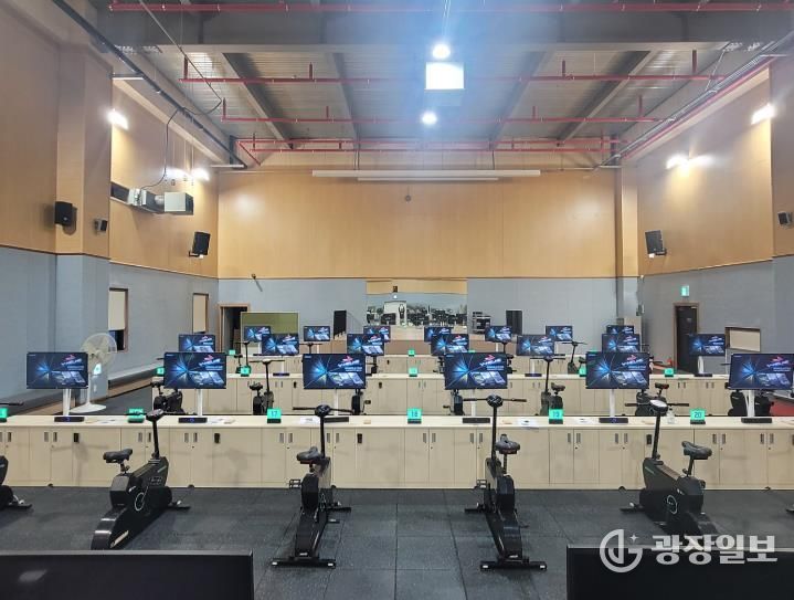 원주 실내사이클장은 시민들이 날씨에 구애받지 않고 안전하게 유산소 운동을 즐길 수 있도록 마련됐다.