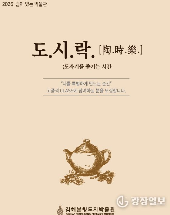 광장일보 주재영 기자 | 김해분청도자박물관 대표 문화행사로 자리매김한 '도.시.락.[陶.時.樂.];도자기를 즐기는 시간'이 2026년 연초부터 본격적으로 운영된다.