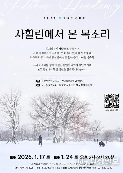 이인숙 문산도서관장은 “세 개의 이름으로 이어진 한 사람의 삶을 통해, 지역사회가 공존의 의미를 새롭게 바라보는 자리가 되길 바란다”라며 “문산도서관이 서로 다른 기억을 가진 이웃들을 잇고 소통하게 하는 평화의 공간이 되길 바란다”라고 말했다.