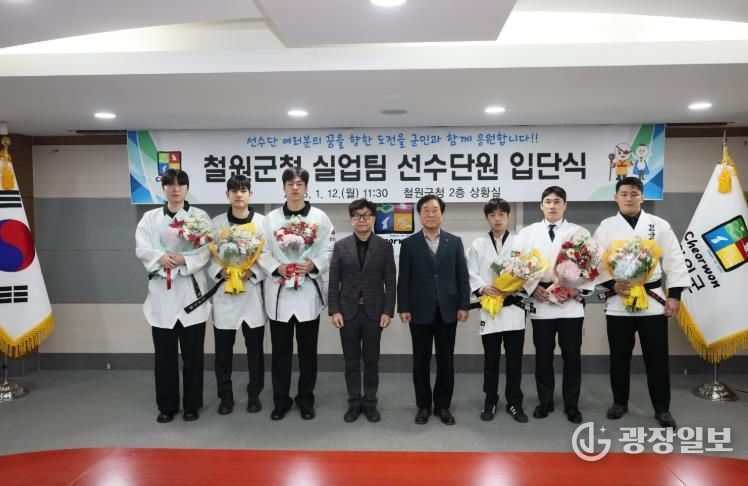 광장일보 이현나 기자 | 철원군은 1월 12일 11시 30분 철원군청에서 2026년 신규 및 재계약 유도 및 태권도 실업팀 선수 입단식을 개최했다.