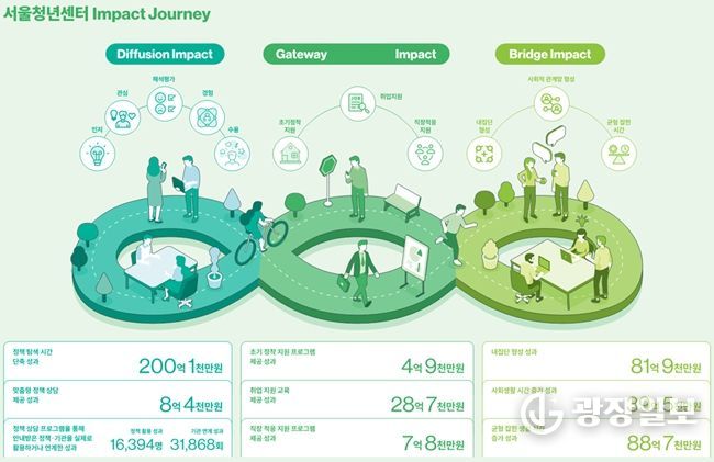 이번 측정은 임팩트 평가 전문 연구기관(임팩트리서치랩)이 2024년 1월~2025년 9월 서울청년센터 사업 결과를 바탕으로 센터 담당자 심층 인터뷰, 센터 이용 경험이 있는 청년 1,404명을 대상으로 한 인터뷰·설문조사 등을 면밀히 분석한 결과다.