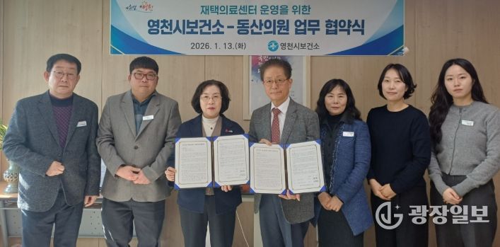 광장일보 주재영 기자 | 영천시는 13일 장기요양 수급자 등 거동이 불편한 환자들에게 체계적인 재택의료 서비스를 제공하기 위해, 민간의료기관인 동산의원과 ‘장기요양재택의료센터 시범사업’ 추진을 위한 업무협약(MOU)을 체결했다고 밝혔다.