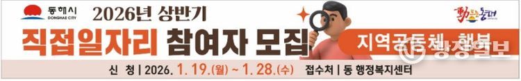 광장일보 이현나 기자 | 동해시는 취업 취약계층의 생계 안정을 돕고 지역경제에 활력을 불어넣기 위해 오는 19일부터 2026년 상반기 직접일자리사업 참여자 모집을 시작한다.