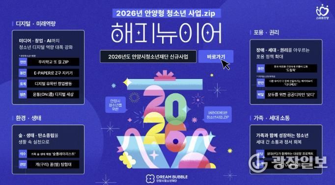 안병일 재단 대표이사는 “2026년 신규사업은 단순한 프로그램 확대가 아니라, 청소년이 스스로 선택하고 기획하며 사회와 연결되는 구조를 만드는 데 의미가 있다”며, “청소년의 오늘이 곧 안양의 내일이 되는 정책을 지속적으로 추진하겠다”고 밝혔다.