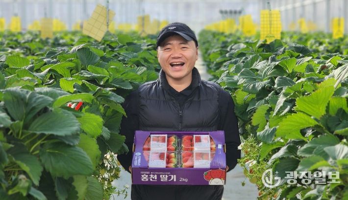 광장일보 이현나 기자 | 홍천군 임대형 스마트팜에서 청년농업인이 정성껏 재배한 싱싱한 딸기가 본격적인 출하를 시작했다.