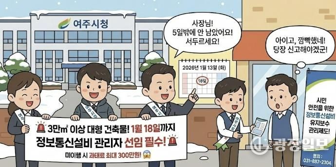 현재 여주시 내 연면적 3만㎡ 이상인 대형 건축물의 관리주체는 오는 2026년 1월 18일까지 정보통신설비 유지보수 관리자를 선임하고 지자체에 신고를 완료해야 합니다.