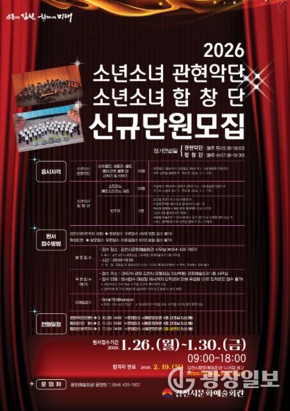 광장일보 주재영 기자 | 김천시 문화예술회관은 김천 문화예술의 미래를 이끌어 갈 시립예술단 신규단원을 모집한다.