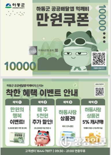 또한, 공공배달앱 먹깨비에서는 모바일 하동사랑상품권 결제가 가능해 지역화폐 이용 편의성을 강화했다. 상품권으로 결제할 경우 결제금액의 5% 캐시백이 제공되며, 1인당 최대 5만 원까지 익월 캐시백으로 지급돼 할인 효과가 한층 더 커진다.