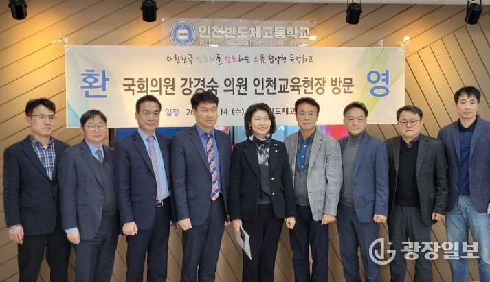 광장일보 주재영 기자 | 인천광역시교육청은 지난 14일 인천반도체고등학교에서 강경숙 국회의원과 ‘인천형 직업교육 안심취업 10년 보장제’의 성공적 안착과 직업계고 발전을 위한 간담회를 열었다.