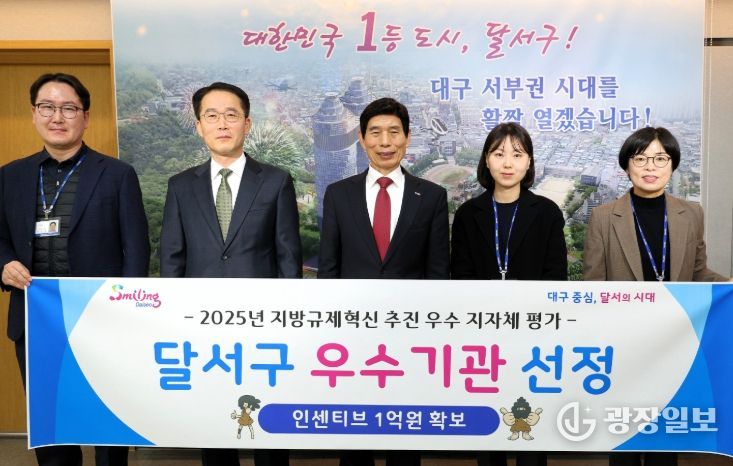 광장일보 주재영 기자 | 대구 달서구는 행정안전부가 주관한 ‘2025년 지방규제혁신 추진 성과평가’에서 우수 지자체로 선정돼 재정 인센티브인 특별교부세 1억 원을 확보했다고 15일 밝혔다.