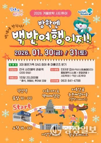 광장일보 주재영 기자 | 익산시가 겨울방학을 맞아 지역의 역사와 문화를 함께 즐길 수 있는 시티투어를 운영한다.