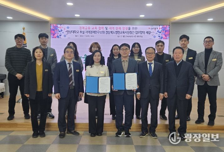 광장일보 주재영 기자 | 경상북도영천교육지원청은 1월 13일 영남대학교 부설 지역경제연구소와 지역사회 연계를 통한 경제·금융 교육 활성화를 위한 업무협약(MOU)을 체결했다.