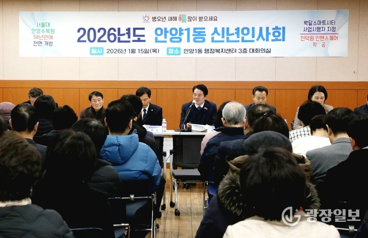 안양시= 주재영 기자 | 안양시가 2026년 새해를 맞아 시민과 직접 소통하는 자리를 마련한다. 안양시는 이달 15일 안양1동을 시작으로 내달 10일까지 관내 31개 동을 순회하며 ‘2026년 동 신년인사회’를 개최한다고 밝혔다.