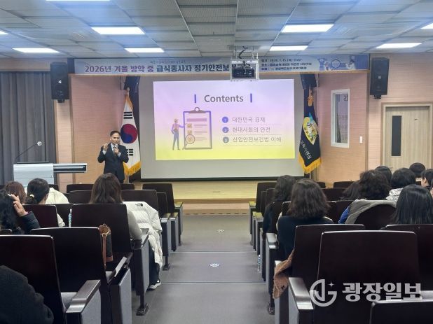 광장일보 주재영 기자 | 성주교육지원청은 겨울방학을 맞이하여 1월 15일(목), 성주 관내 초, 중, 고 급식종사자(조리사, 조리원) 44명을 대상으로 성주교육지원청 다온관 시청각실에서 정기안전보건교육을 실시했다.